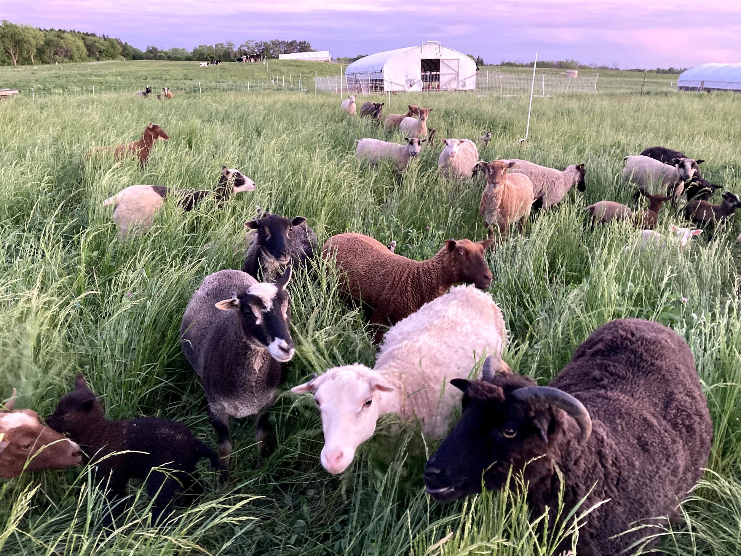 We also have a large flock of Shetland sheep that we raise on pasture, and we sell lamb meat, wool blankets, sheepskins, and other wool products. We have planted 28 acres of pollinator prairie on our 100 acres and have planted over 150 bur oaks to mimic the oak savannas that would have been here before white settlers.
