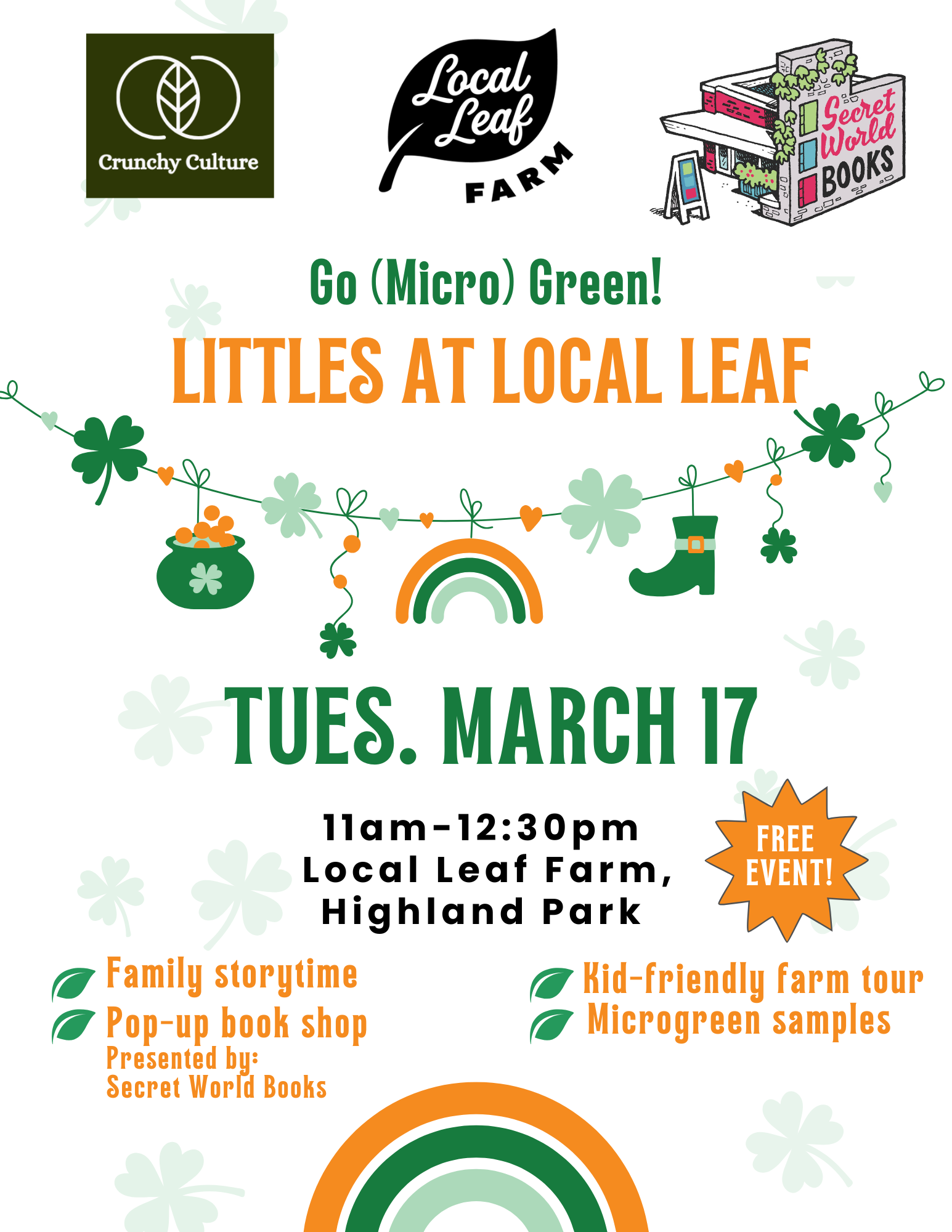 Celebrate spring and St. Paddy’s Day with a peek inside Highland Park’s newest indoor hydroponic farm! We’re hosting a family-friendly morning filled with fresh greens and local stories.